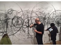 Drawing sound. Interactive art. Conductive lead creates values used to play a sample. #codeconscious #SVA http://t.co/xmI5NNWsMp